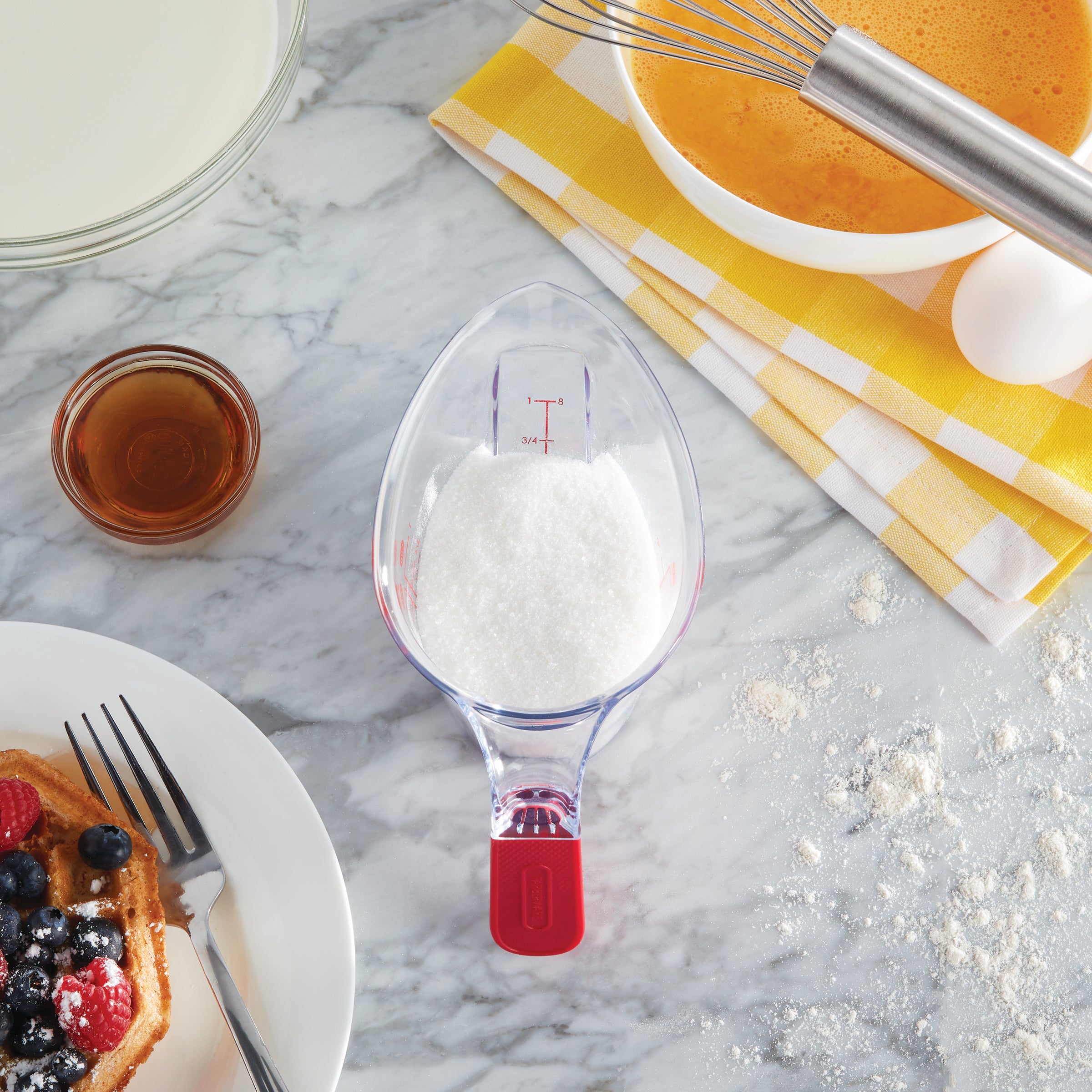These innovative cups feature a unique angled surface that lets you read measurements from above while pouring, eliminating the awkward stop-and-check dance that often leads to recipe mishaps. Whether you're following your grandmother's secret sauce recipe or perfecting your morning smoothie ratio, the bright, easy-to-read markings in both standard and metric measurements ensure accuracy every time. Built to last and dishwasher safe, these measuring cups in 1-cup, 2-cup, and 4-cup sizes are the smart upgrade your kitchen deserves.